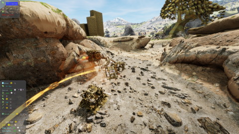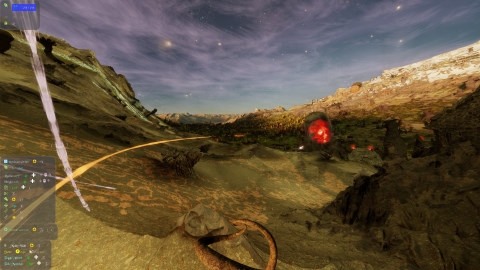 Travel to different regions of the world; forests, snowy mountains, and deserts are available in the default world rules(Or use the in-game tools to make new rules and new biomes)